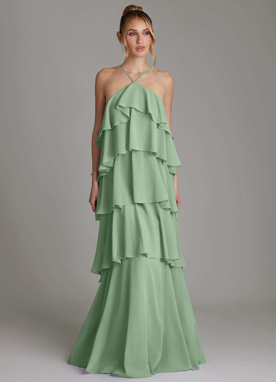 Klä av A-Linje i Chiffong Rynkad Matcha