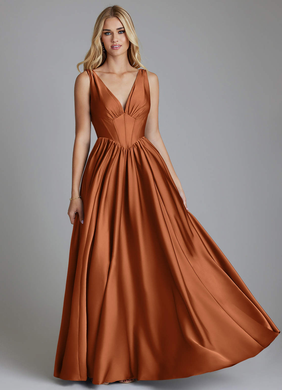 Klä av A-Linje i Stretch Satin Korsett Koppar