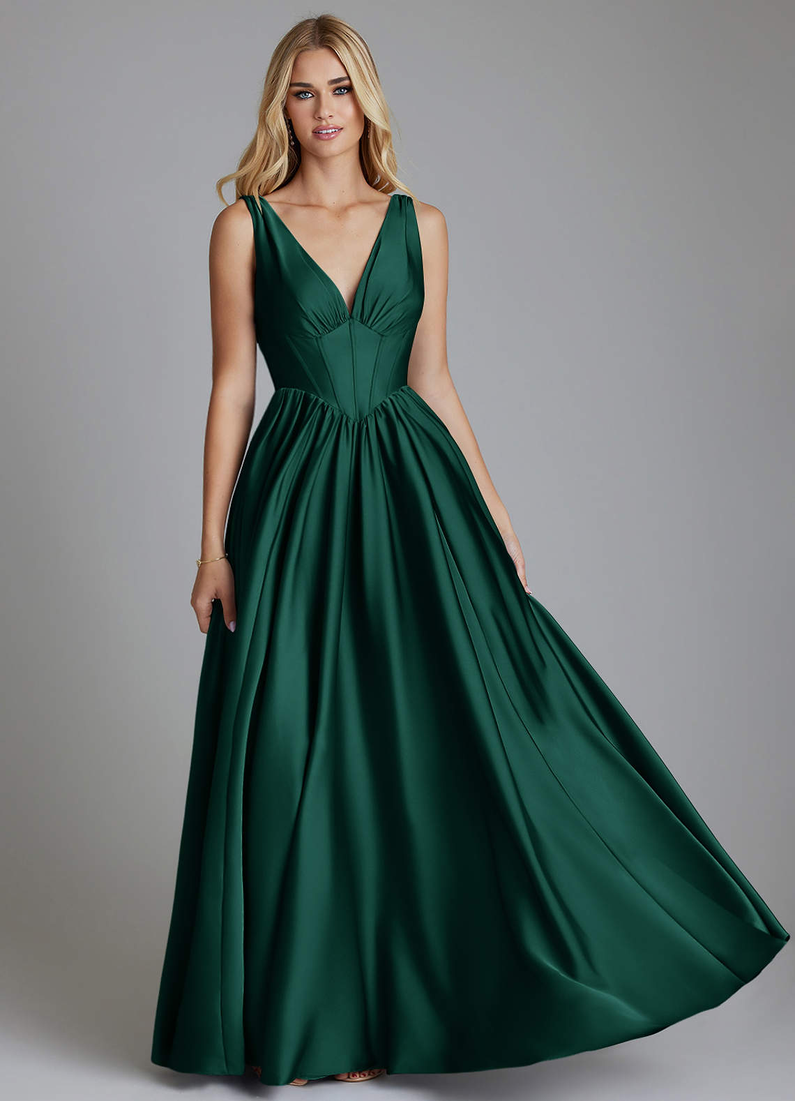 Klä av A-Linje i Stretch Satin Korsett Smaragdgrön