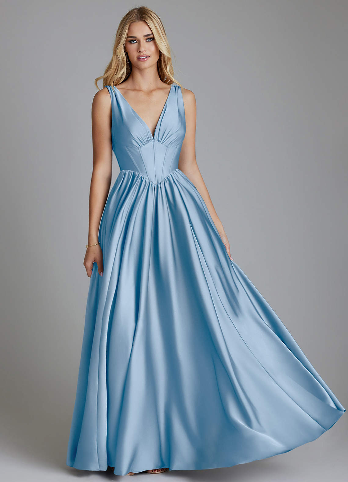 Klä av A-Linje i Stretch Satin Korsett Puderblå