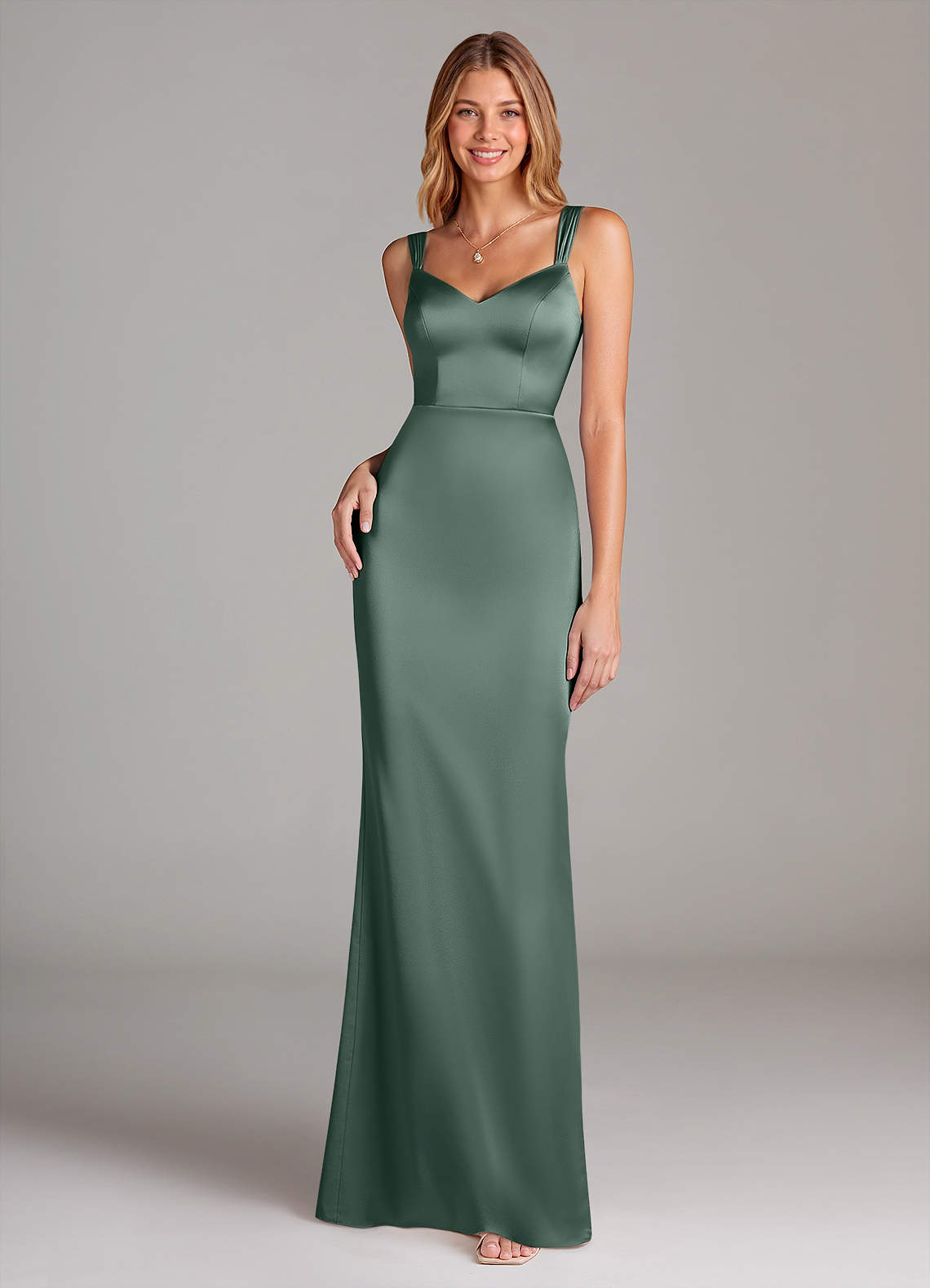 Klä av Tubklänning i Stretch Satin Plisserad Eukalyptus