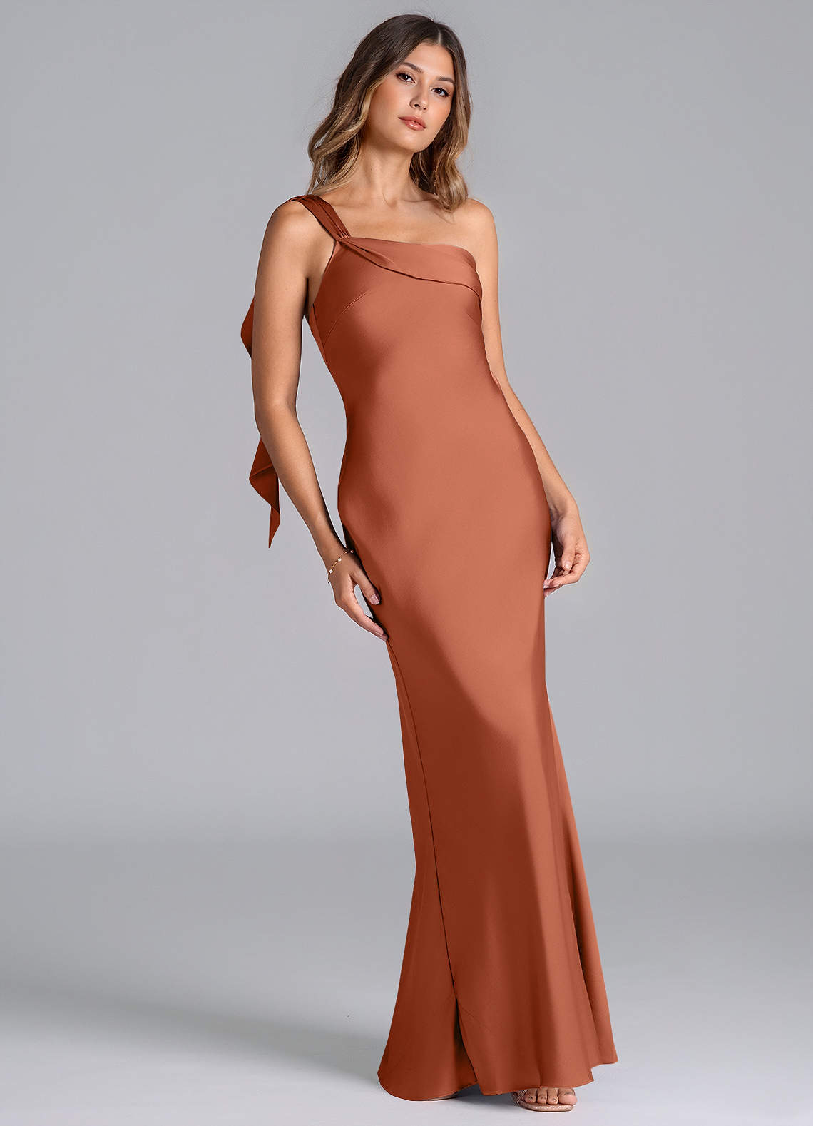 Klä av Sjöjungfru i Stretch Satin Ena axeln Cederros