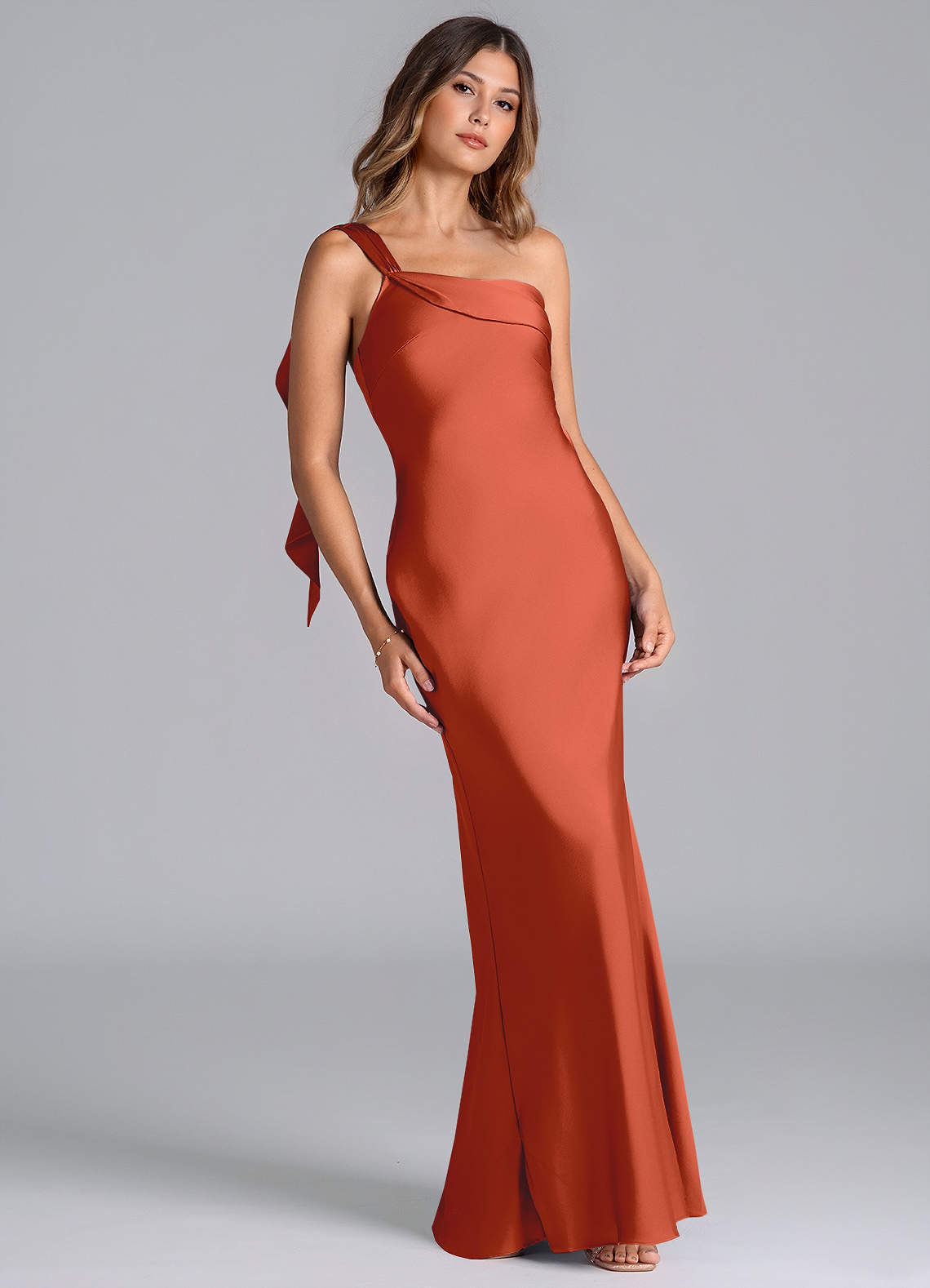 Klä av Sjöjungfru i Stretch Satin Ena axeln Rost