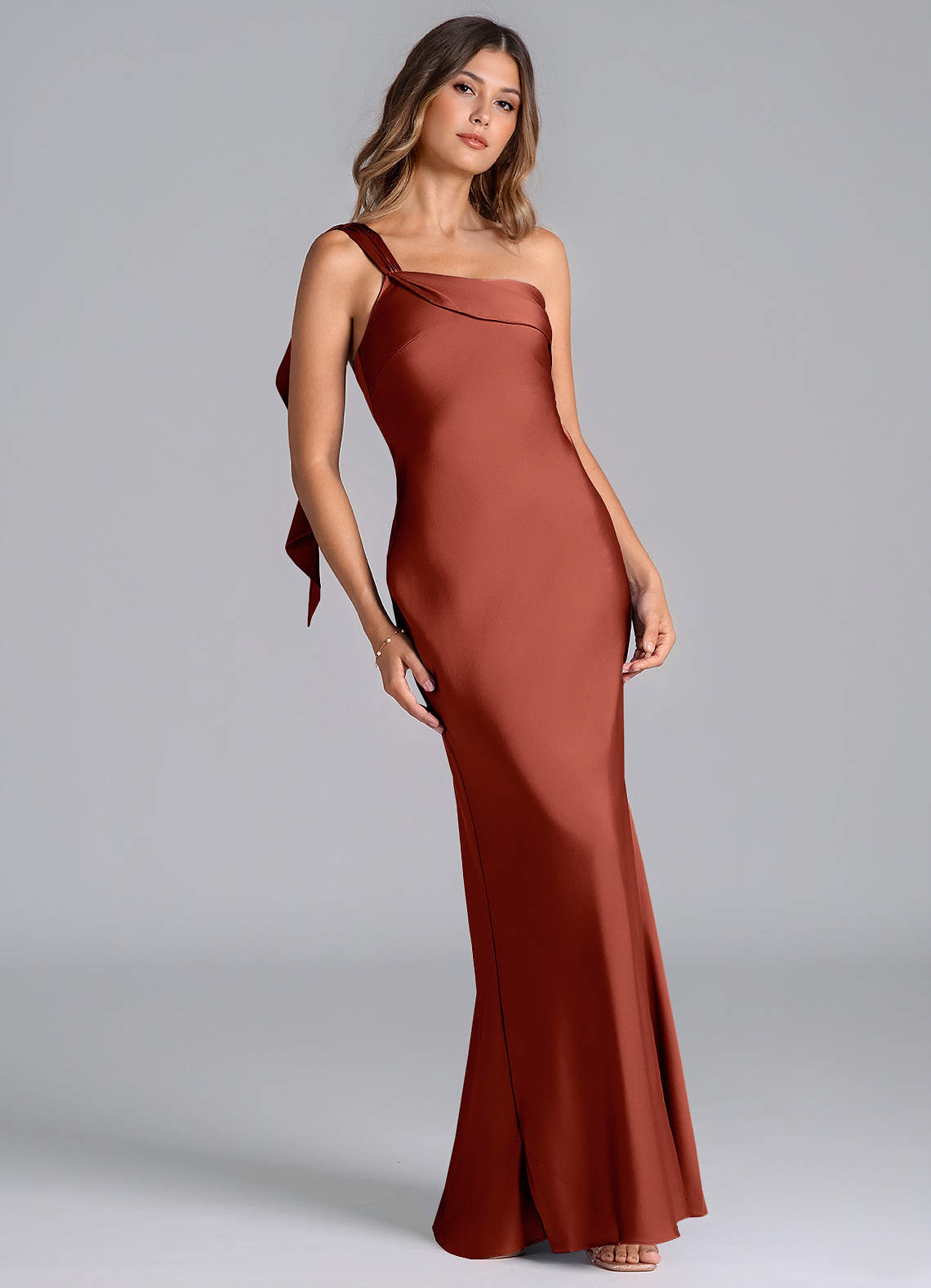 Klä av Sjöjungfru i Stretch Satin Ena axeln Terrakotta