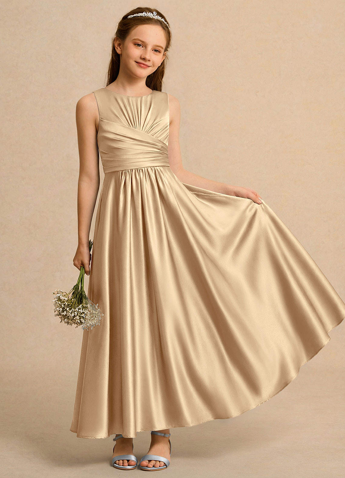 Klä A-Line i Stretch Satin Plisserad