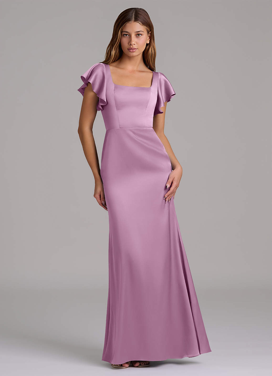 Klä av Sjöjungfru i Stretch Satin Fyrkantig halsringning Blåregn