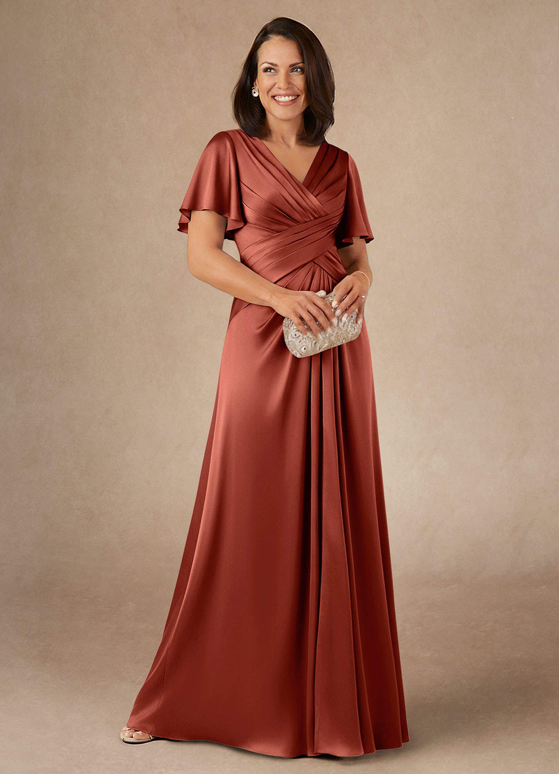 Klä A-Line i Stretch Satin Plisserad Terrakotta