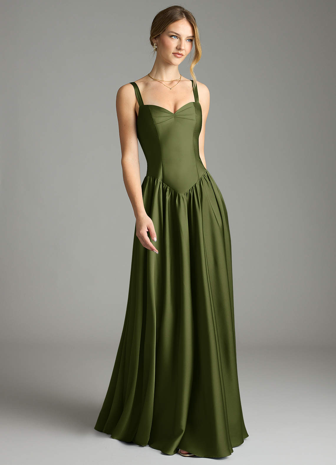 Klä av A-Linje i Stretch Satin Korsett Oliv