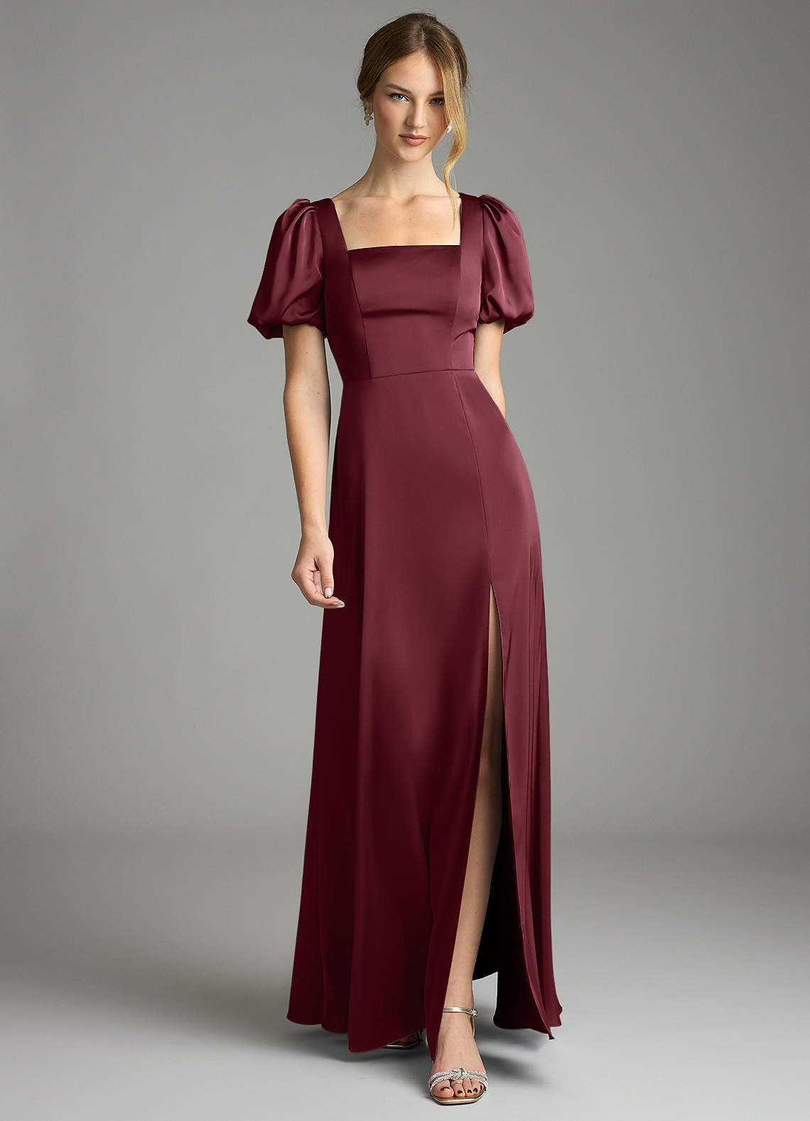 Klä av A-Linje i Stretch Satin Plisserad Cabernet