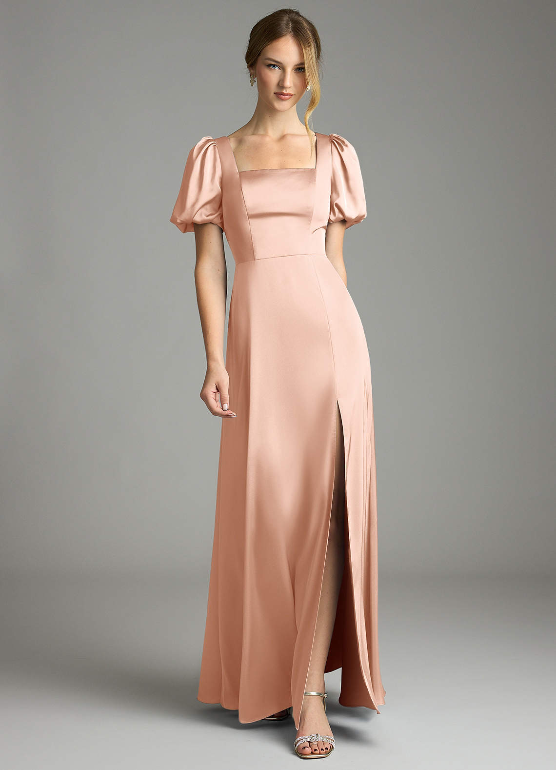 Klä av A-Linje i Stretch Satin Plisserad Roséguld