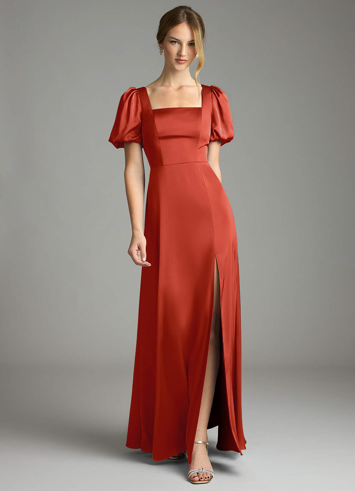 Klä av A-Linje i Stretch Satin Plisserad Rost