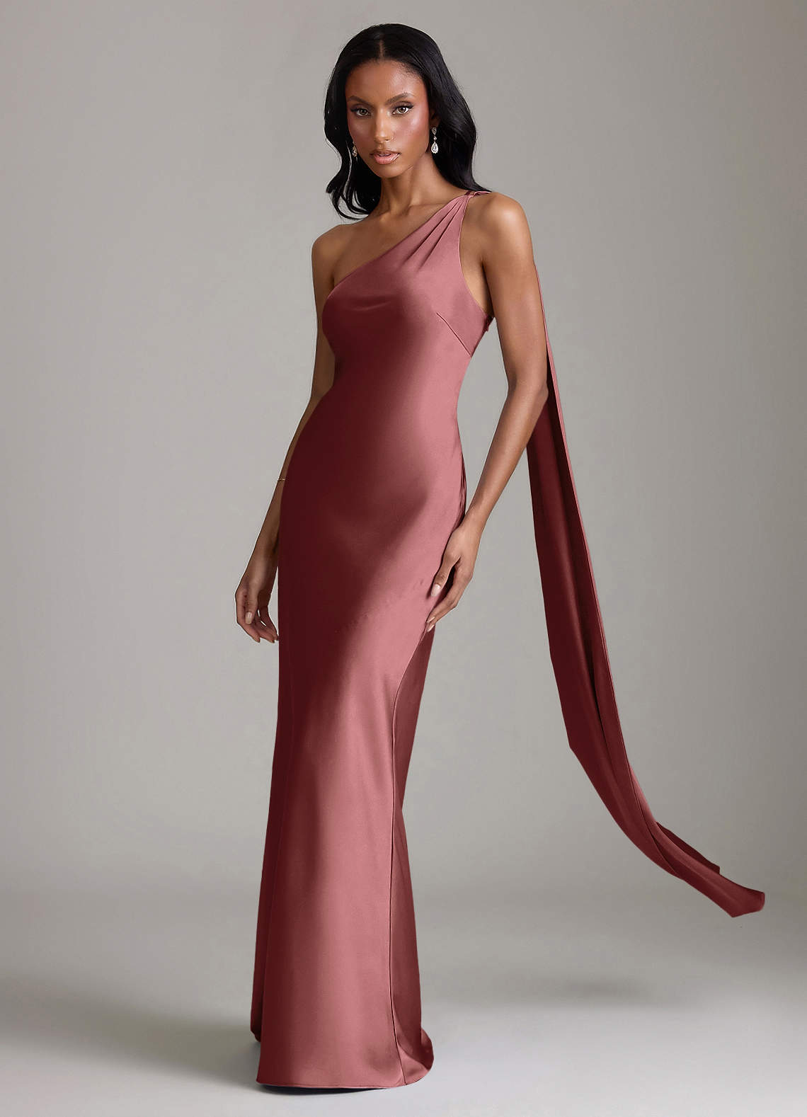 Klä av Sjöjungfru i Stretch Satin Ena axeln Ametist