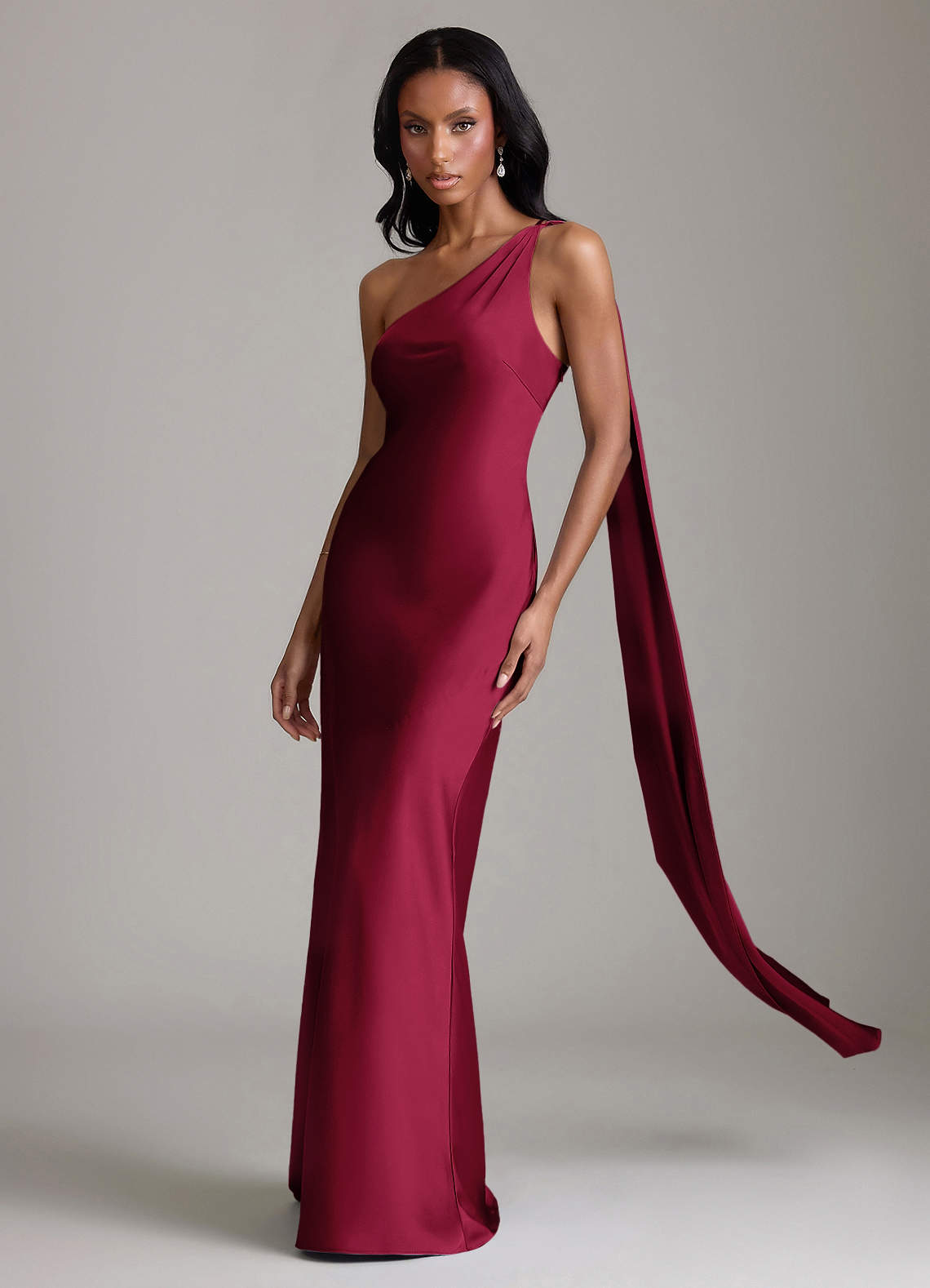 Klä av Sjöjungfru i Stretch Satin Ena axeln Bourgogne