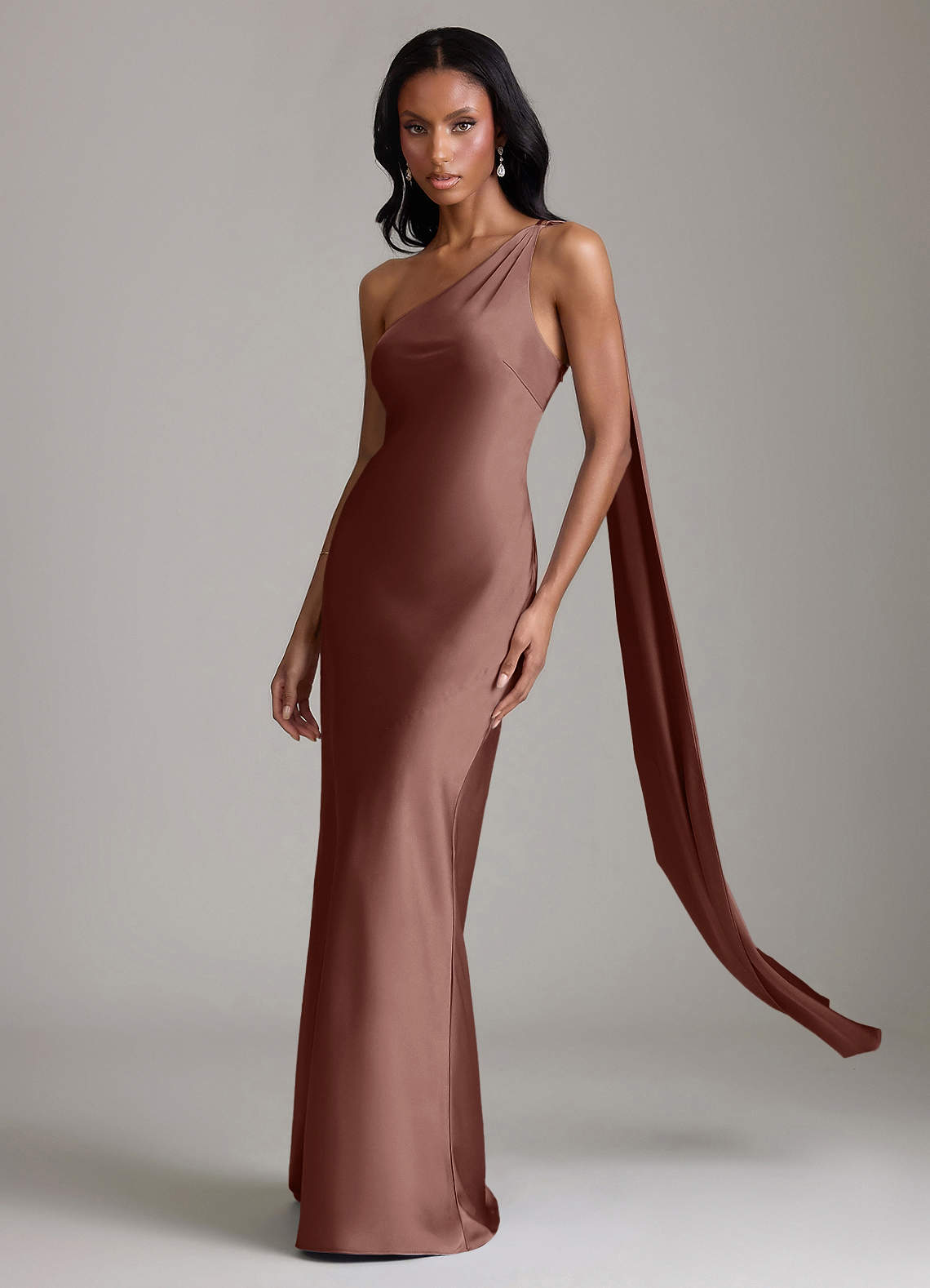 Klä av Sjöjungfru i Stretch Satin Ena axeln Espresso