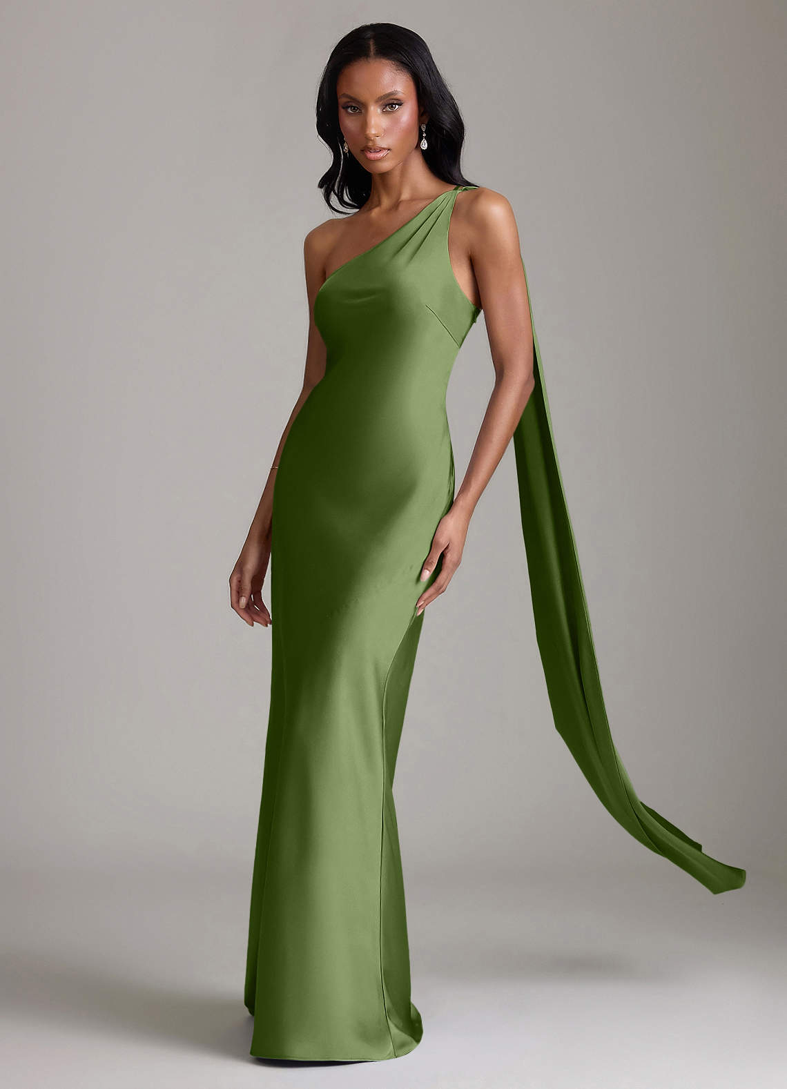 Klä av Sjöjungfru i Stretch Satin Ena axeln Enbärsgrön