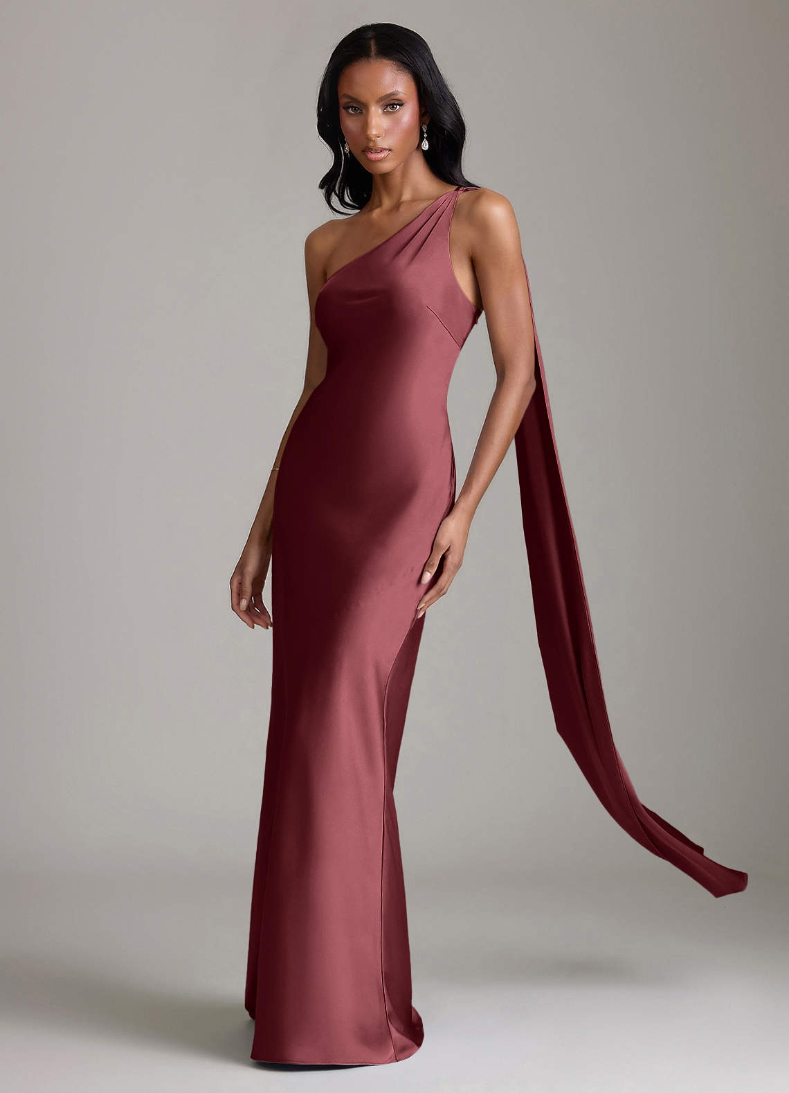 Klä av Sjöjungfru i Stretch Satin Ena axeln Merlot