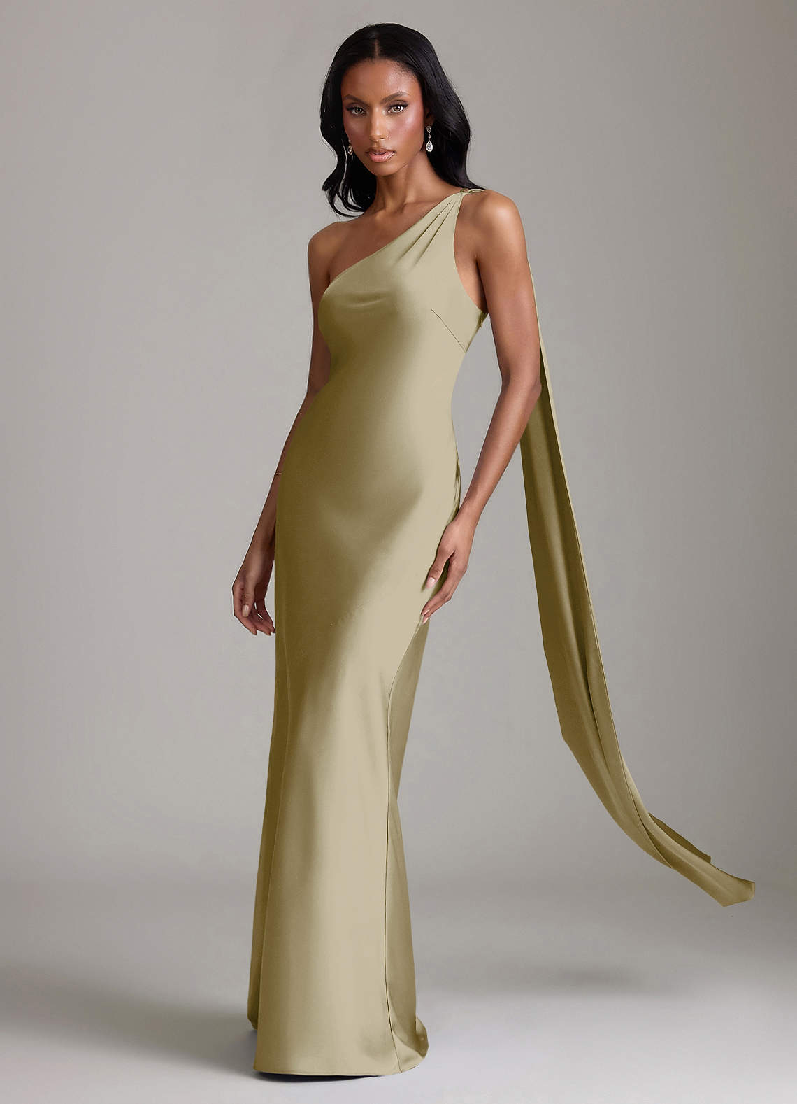 Klä av Sjöjungfru i Stretch Satin Ena axeln Mossgrön