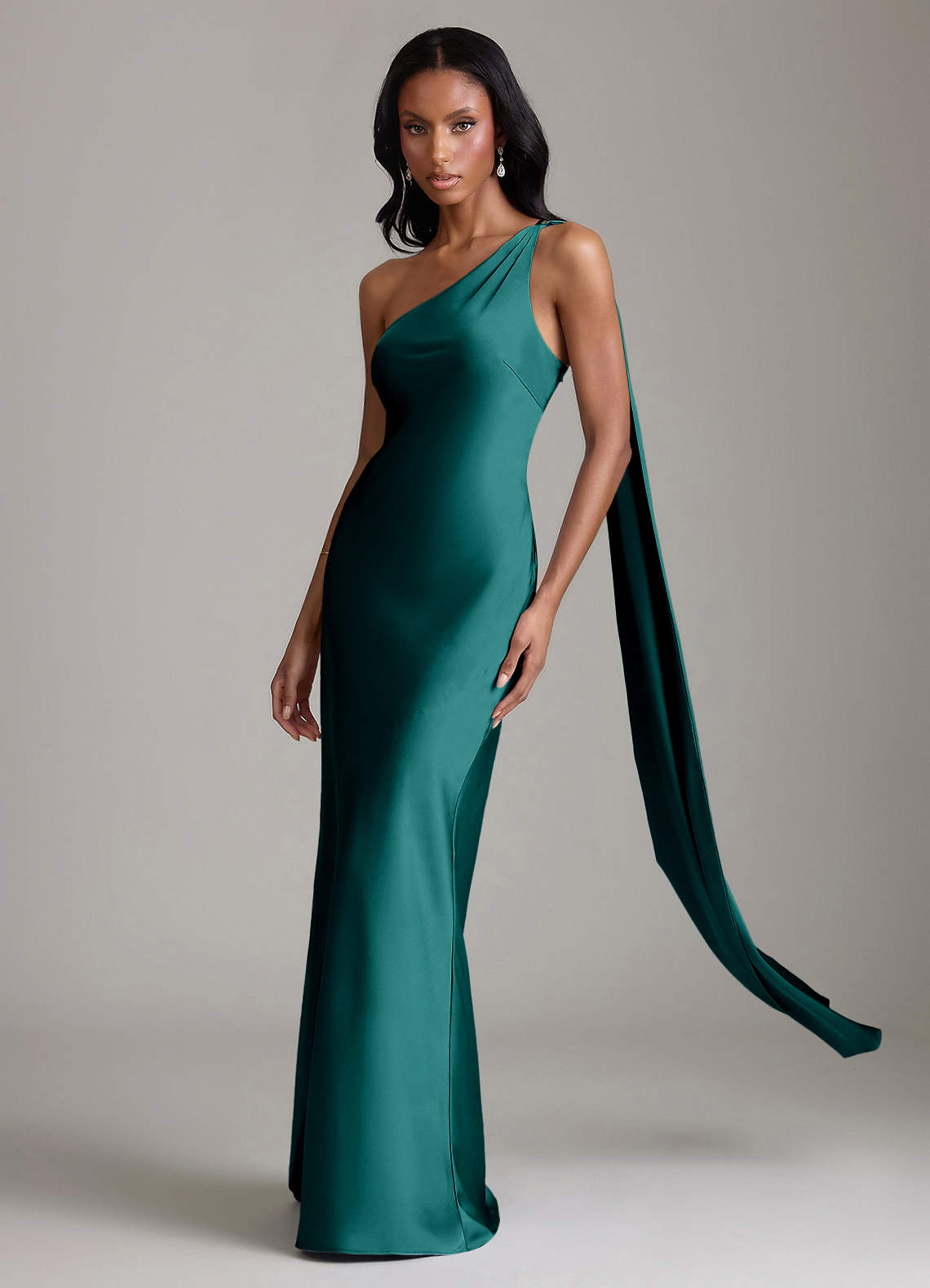 Klä av Sjöjungfru i Stretch Satin Ena axeln Påfågelblå