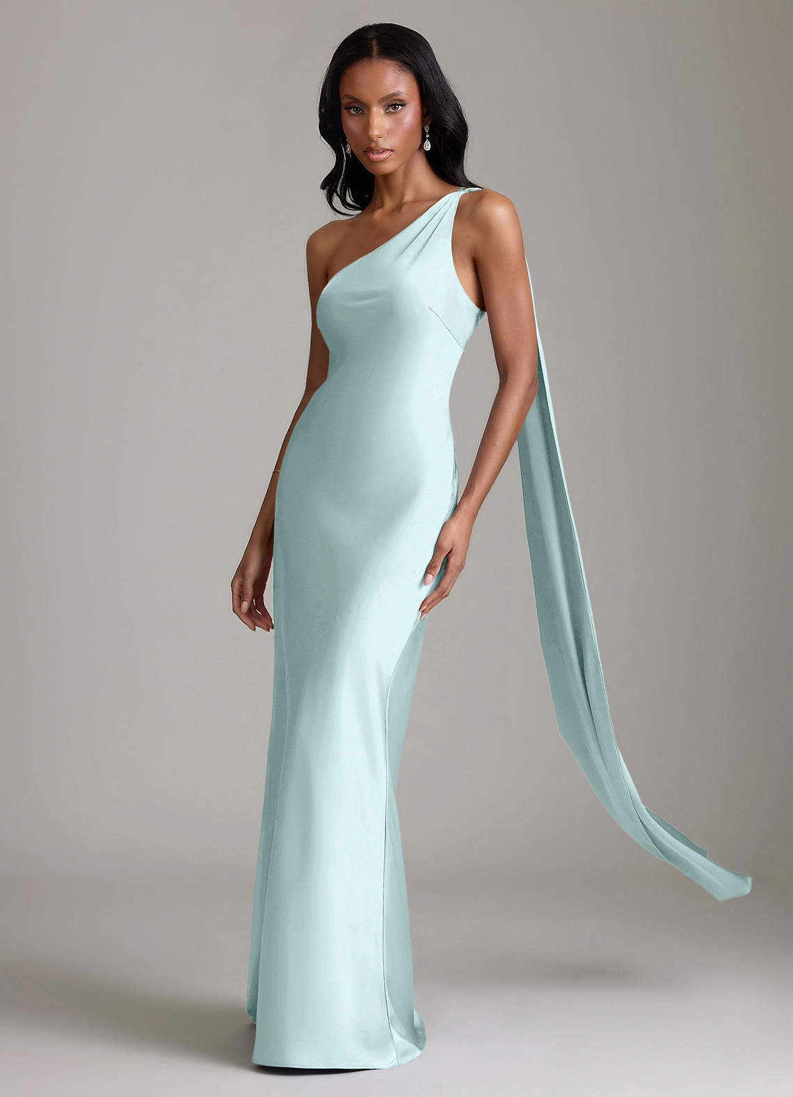 Klä av Sjöjungfru i Stretch Satin Ena axeln Havsglas