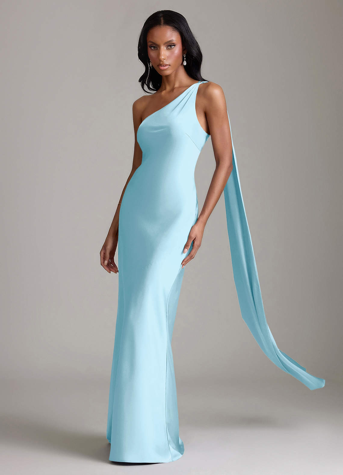 Klä av Sjöjungfru i Stretch Satin Ena axeln Himmelsblå