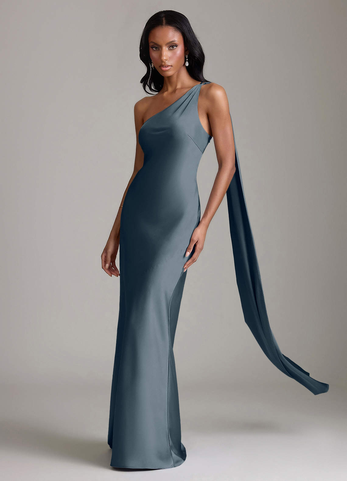 Klä av Sjöjungfru i Stretch Satin Ena axeln Skymning