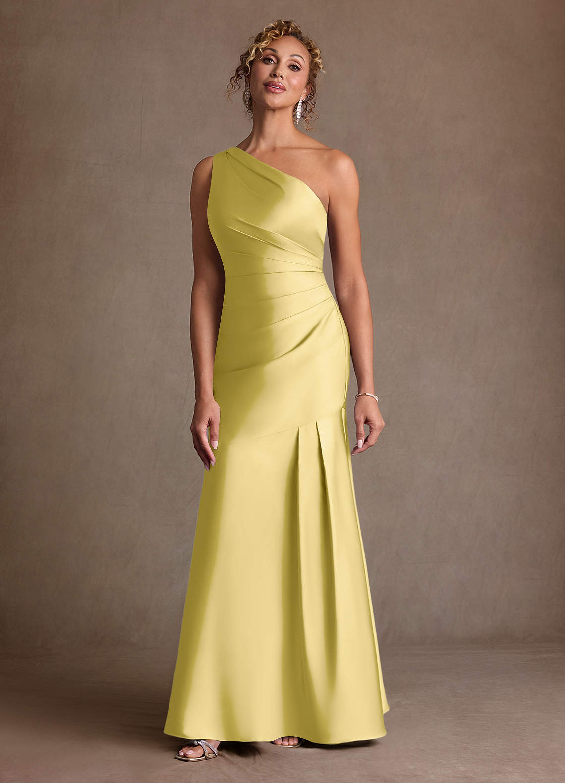 Klä Sjöjungfru i Stretch Satin Ena axeln Kanariefågel