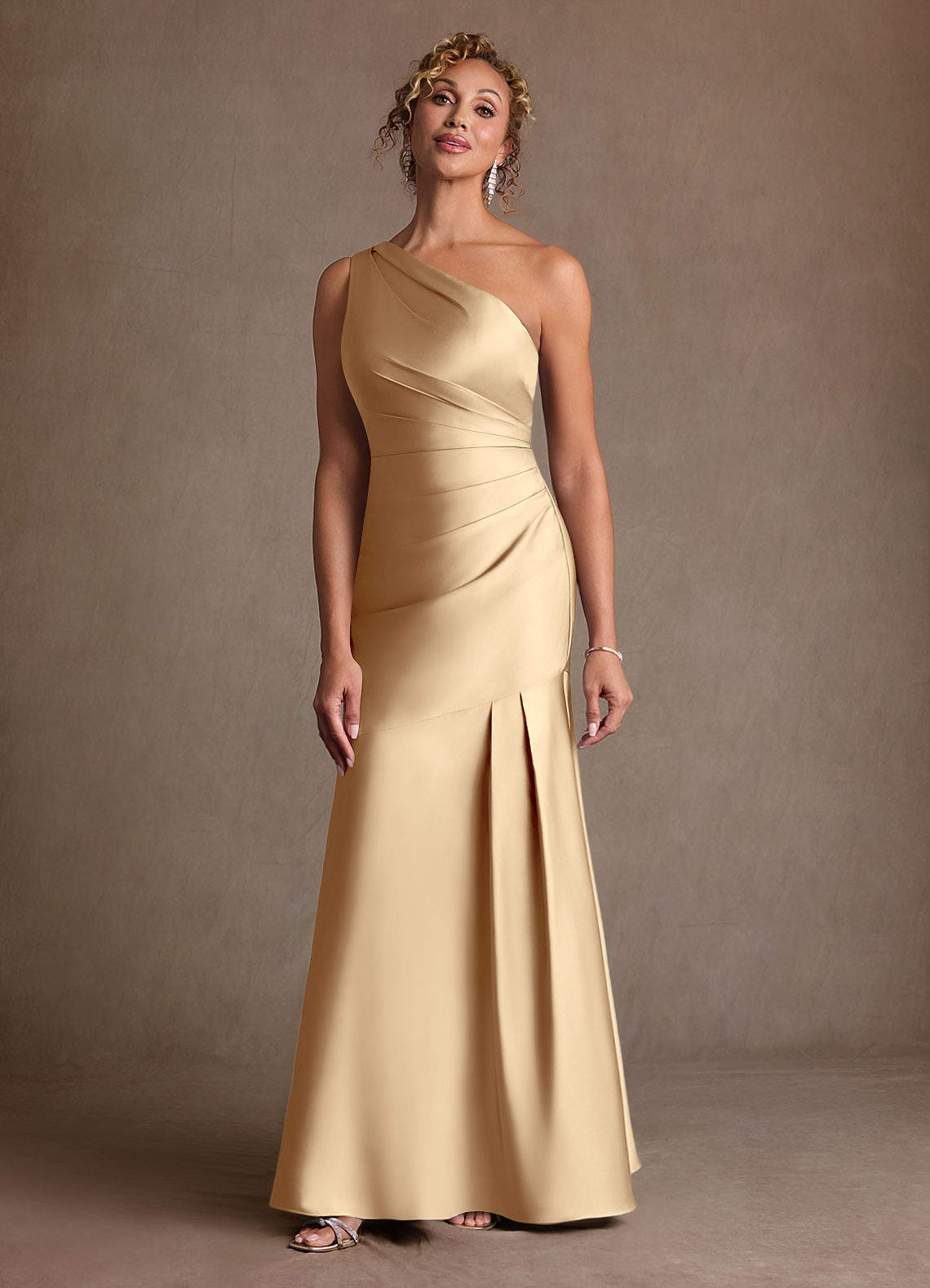 Klä Sjöjungfru i Stretch Satin Ena axeln Champagne