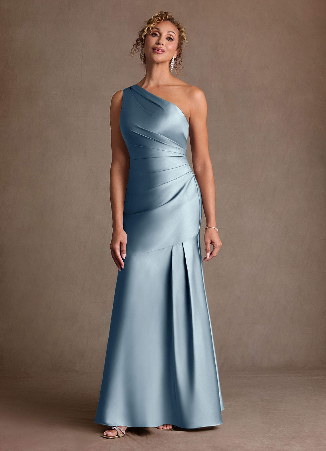 Klä Sjöjungfru i Stretch Satin Ena axeln Dammblå