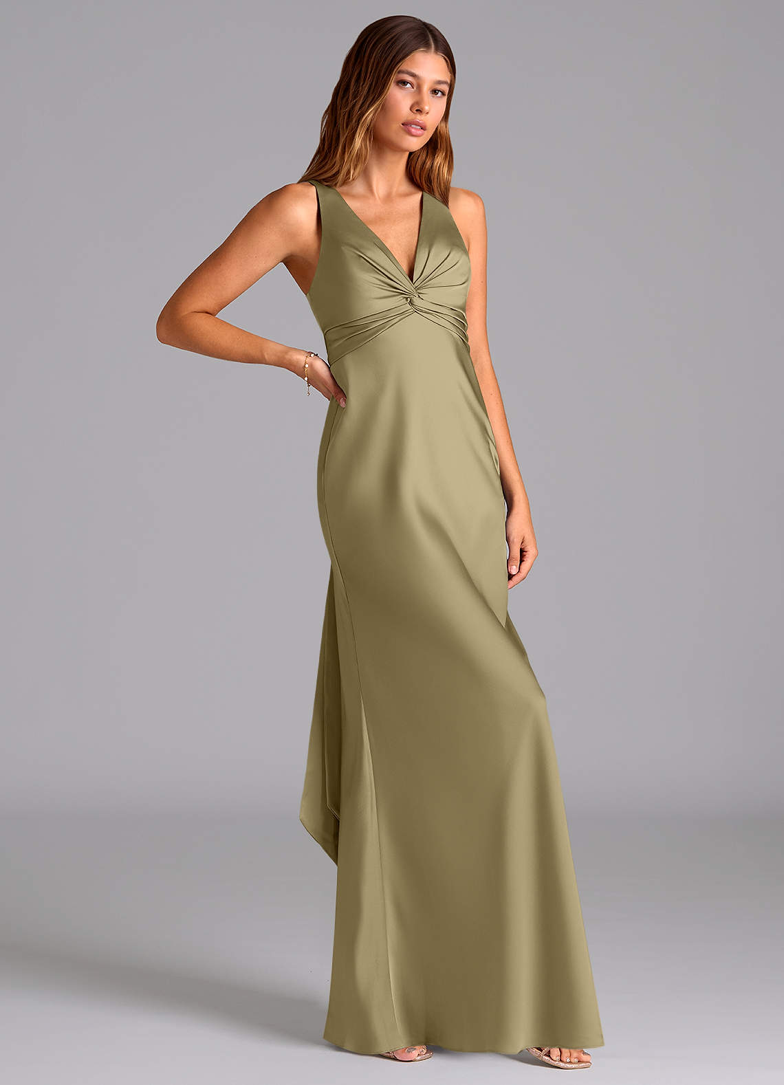 Klä av Sjöjungfru i Stretch Satin Mossgrön