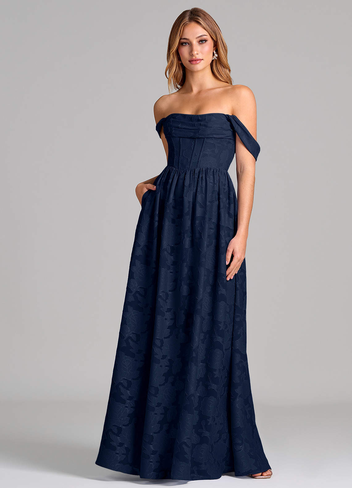 Klä av A-Linje i Blommig Utbrändhet Korsett Mörk Marinblå