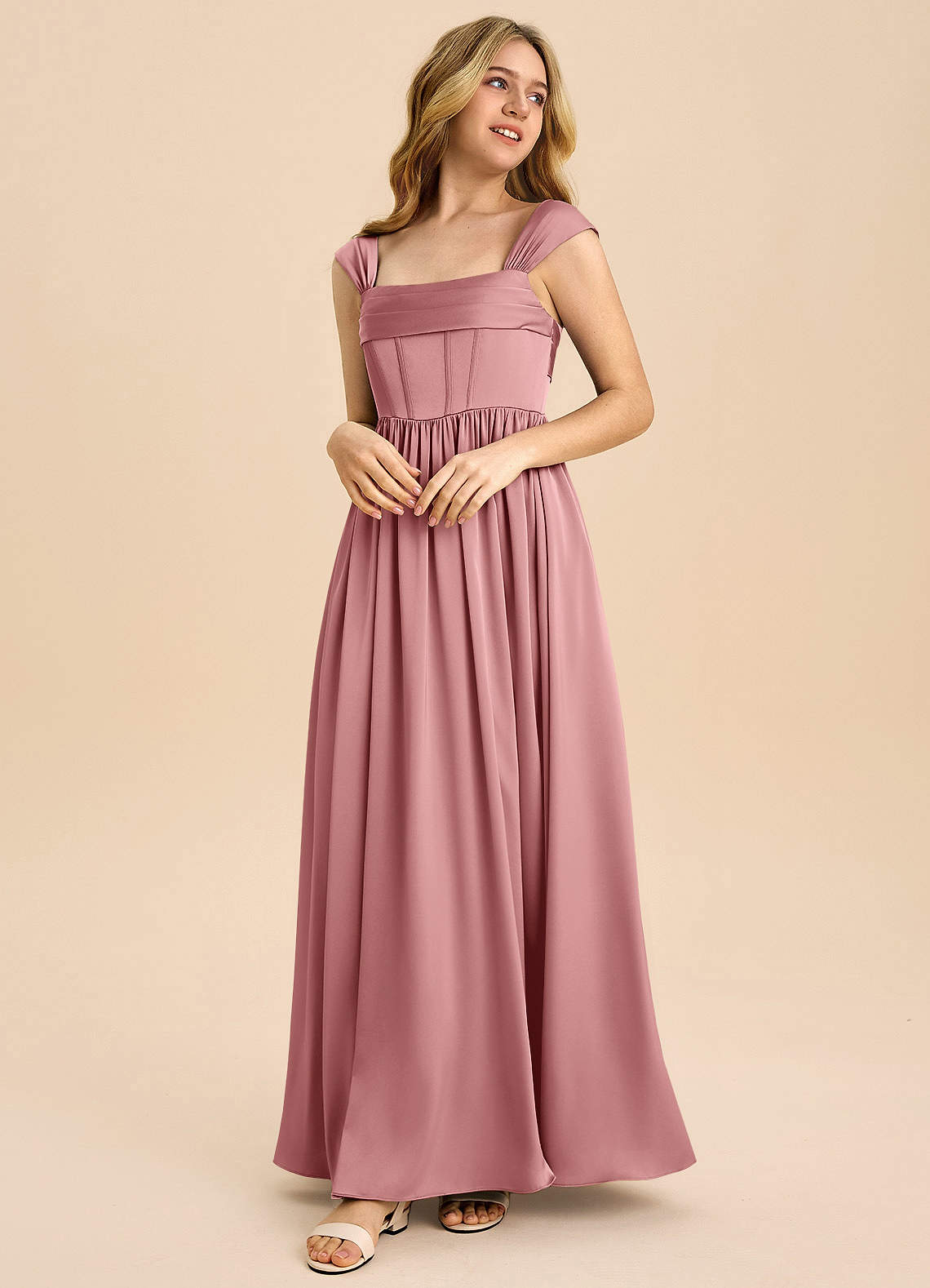 Klä av A-Line i Stretch Satin Plisserad