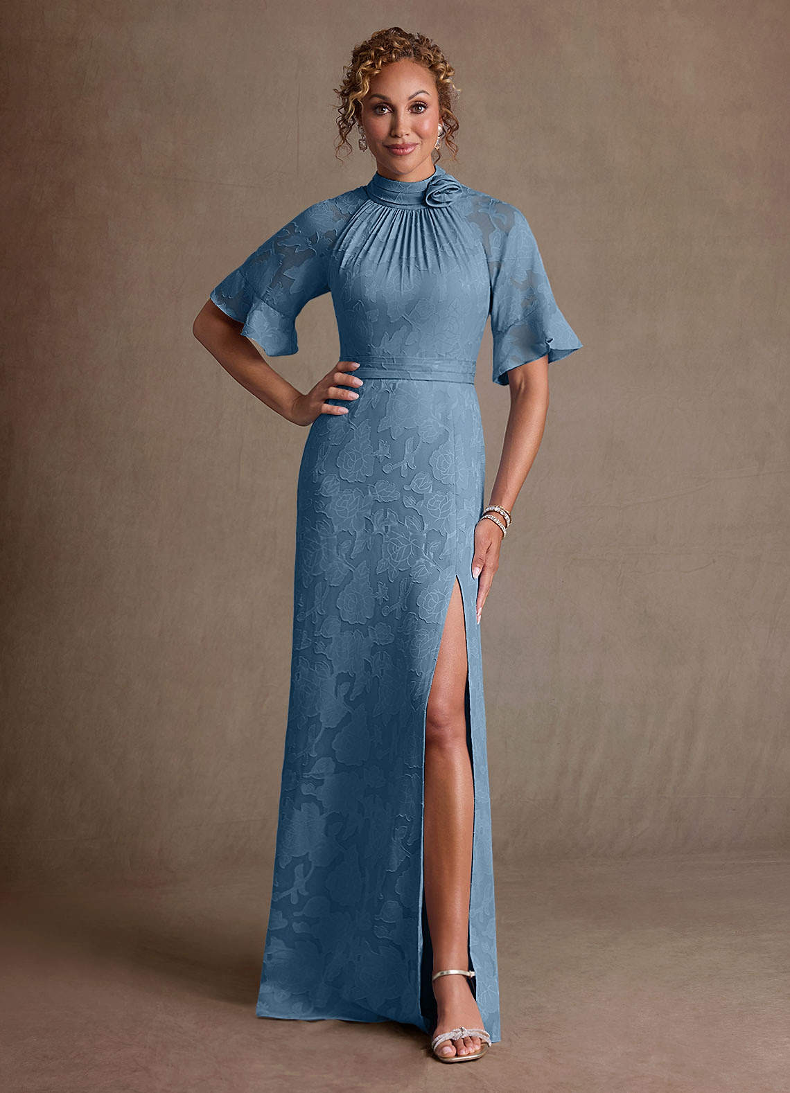 Klä Tubklänning i Blommig Utbrändhet Plisserad Stålblå