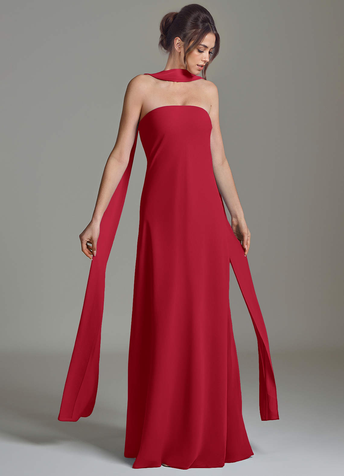 Klä av A-Linje i Chiffong Axelbandslös Scharlakansrött