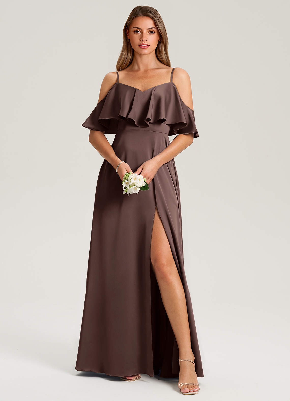 Klä av A-Linje i Stretch Satin Av axeln Ganache