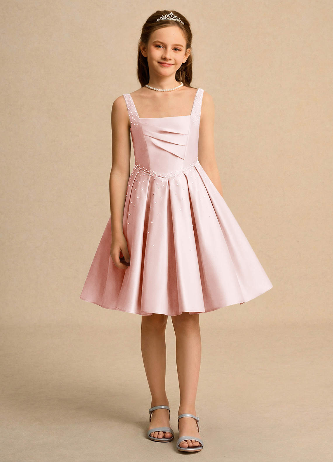 Klä Balklänning i Matt satäng Plisserad