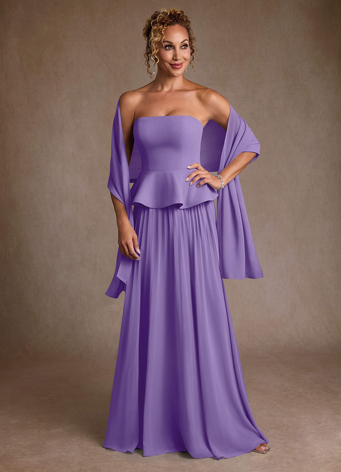 Klänning A-Line i Chiffong Plisserad Tahiti