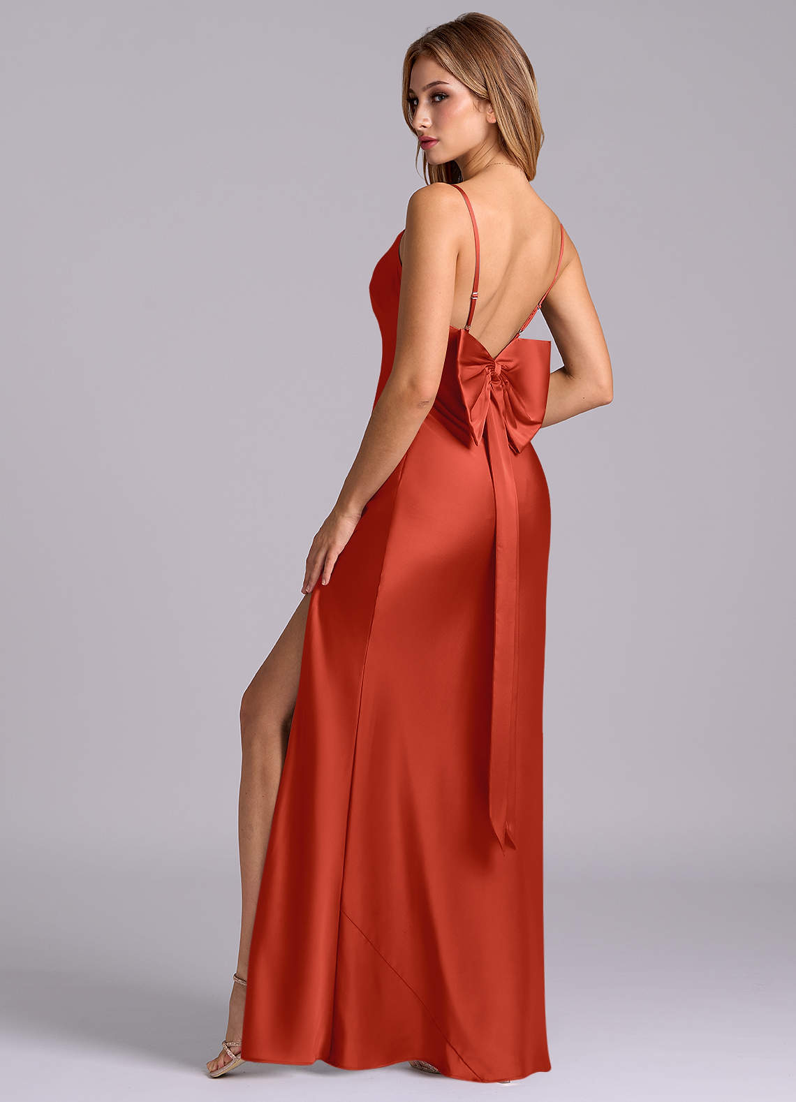Klä av Tubklänning i Stretch Satin Rosett Rost