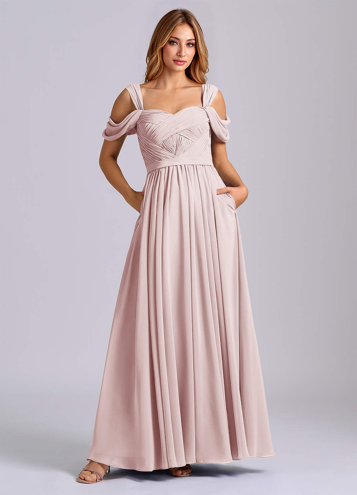 Klä av A-Linje i Chiffong Av axeln Rodnande Rosa