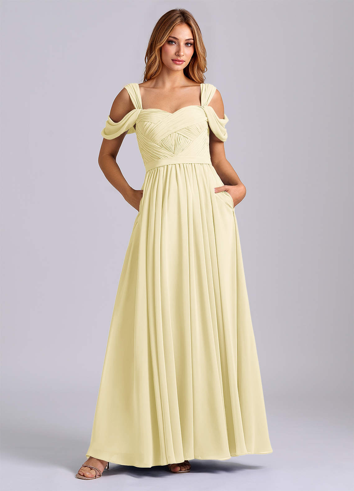 Klä av A-Linje i Chiffong Av axeln Citronsorbet