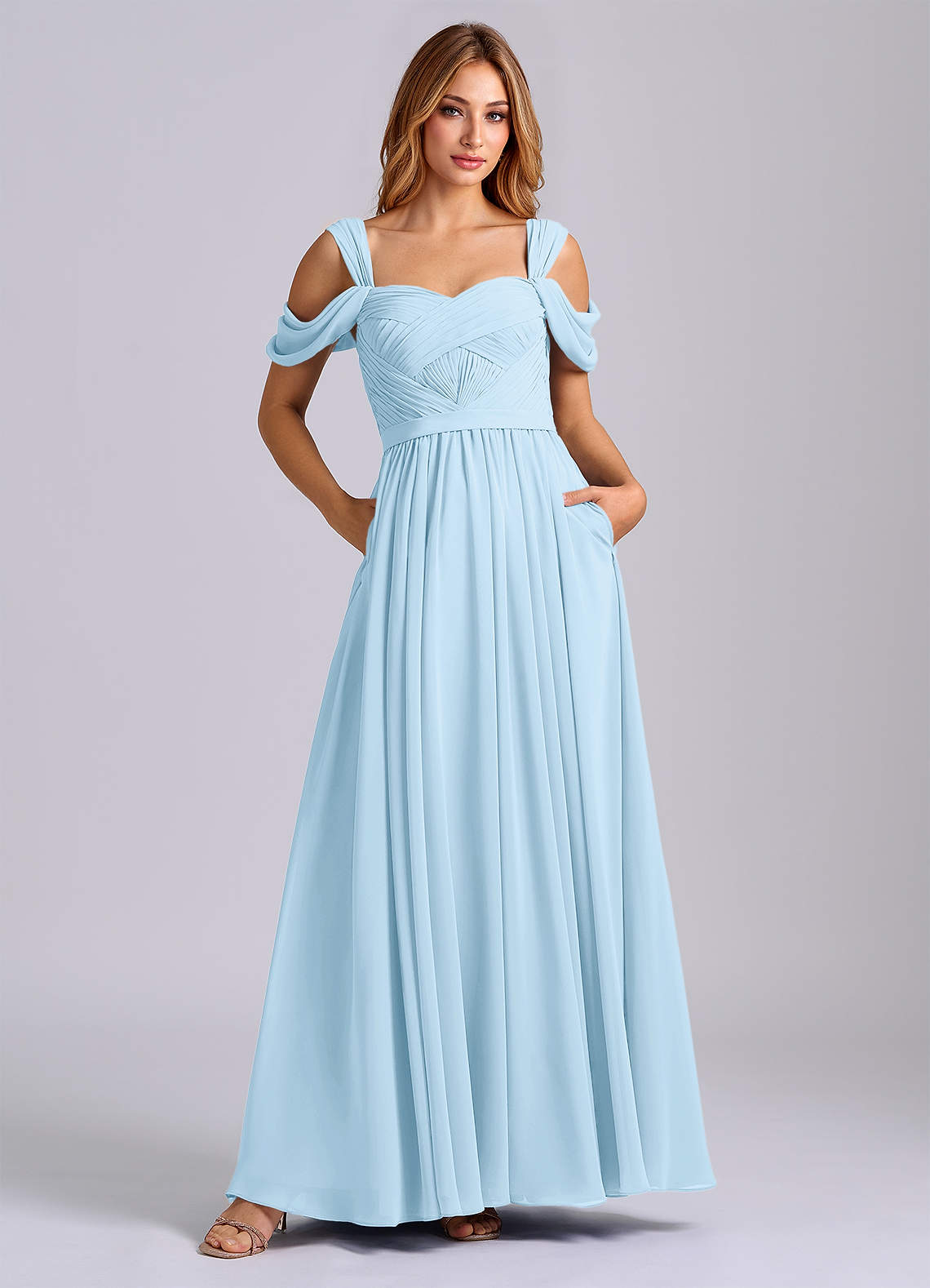 Klä av A-Linje i Chiffong Av axeln Himmelsblå