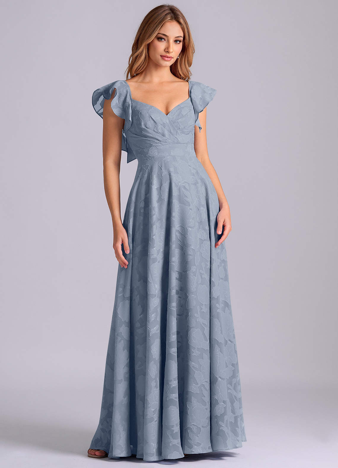 Klä av A-Linje i Blommig Utbrändhet Älskling Halsringning Dammblå