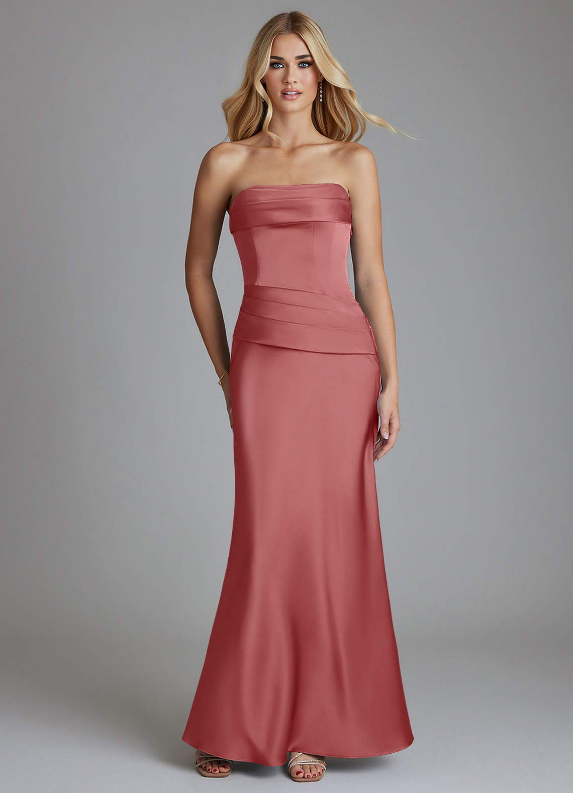 Klä av Tubklänning i Stretch Satin Plisserad Antik Ros