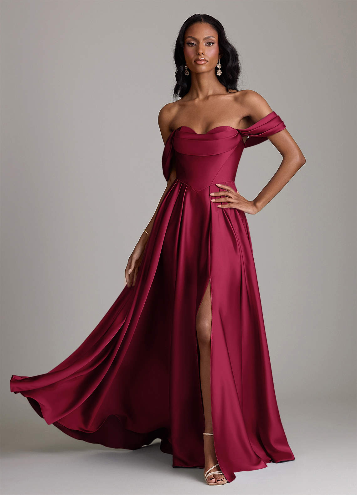 Klä av A-Linje i Stretch Satin Av axeln Bourgogne