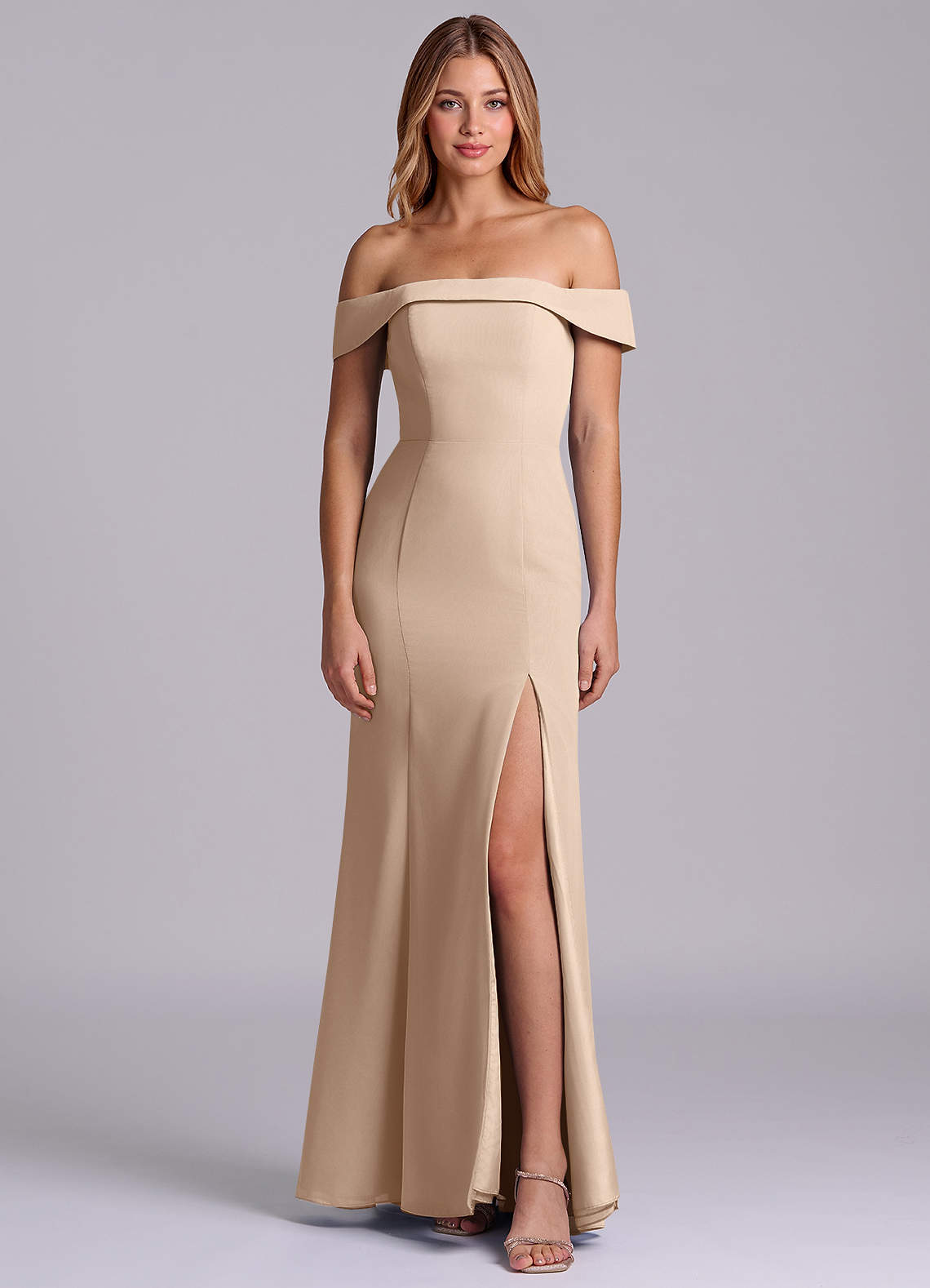 Klä av Tubklänning i Chiffong Av axeln Taupe Konvertibel