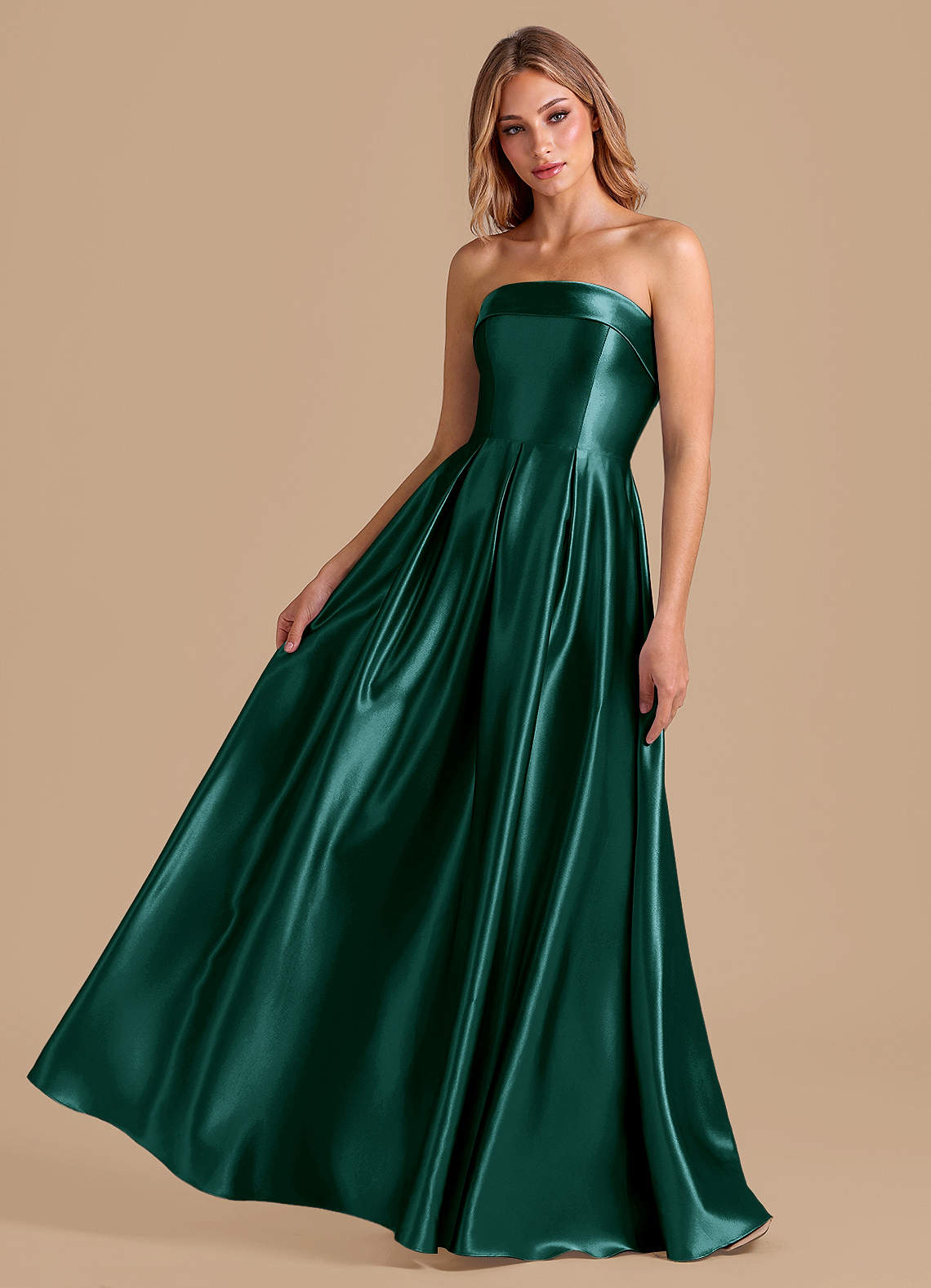 Klä av A-Linje i Metallisk satin Plisserad Tallgrön
