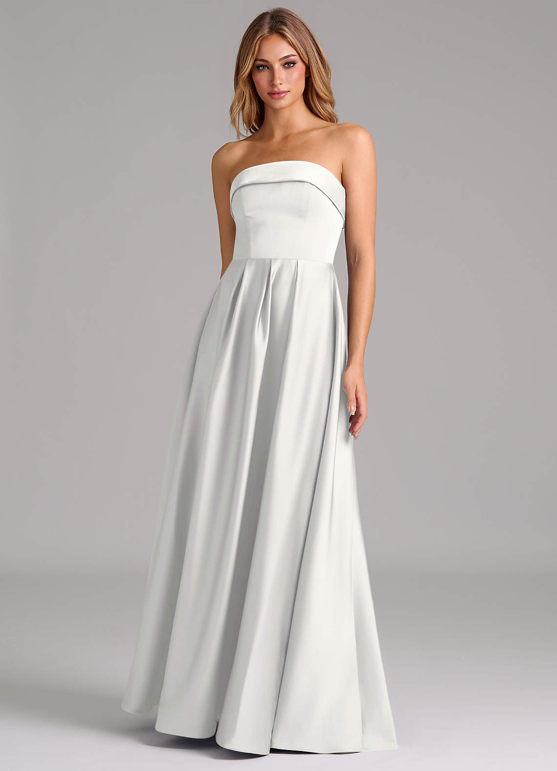 Klä av A-Linje i Stretch Satin Axelbandslös Vit Konvertibel