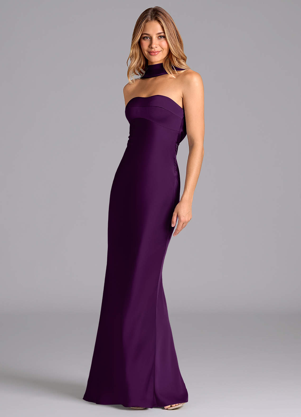 Klä av Sjöjungfru i Stretch Satin Axelbandslös Druva