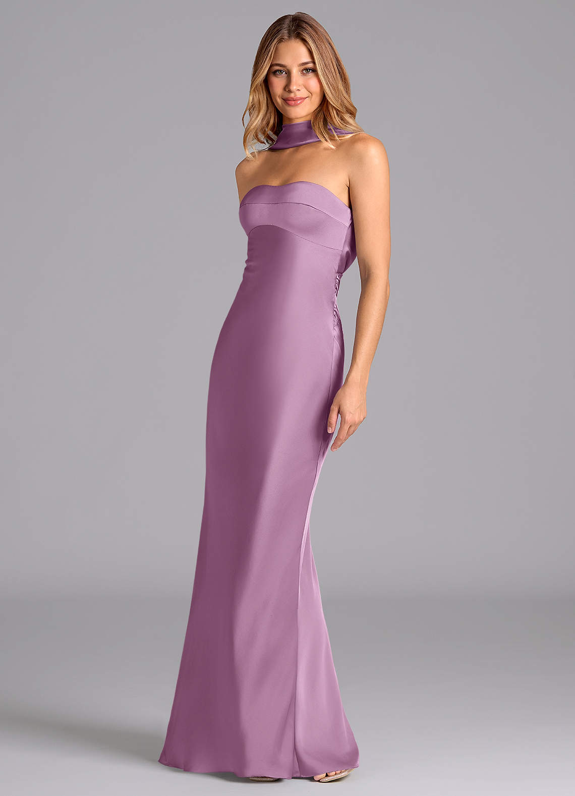 Klä av Sjöjungfru i Stretch Satin Axelbandslös Blåregn
