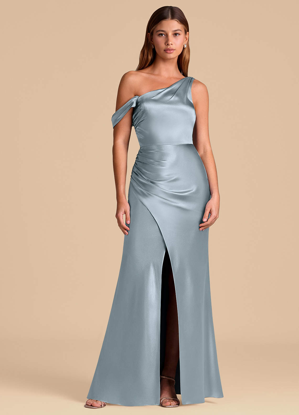 Klä av Sjöjungfru i Metallisk satin Av axeln Dammblå Konvertibel