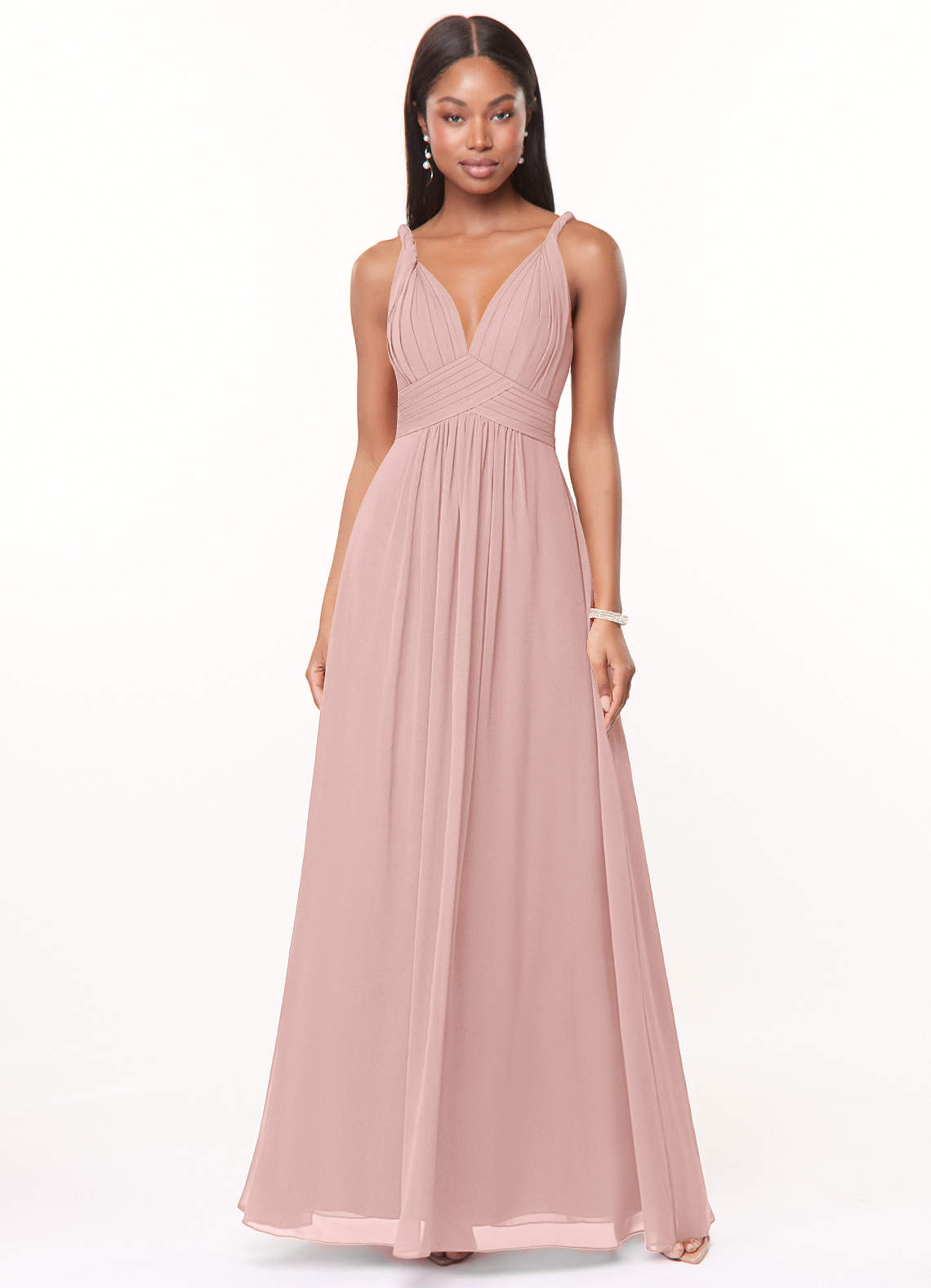 Klä av A-Linje i Chiffong Plisserad Puderrosa